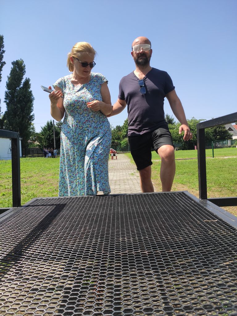 A szemléletformáló eseményen Moni Imola gyógypedagógus segítségével olyan speciális szimulációs szemüvegeket is kipróbálhattunk, amelyek a különböző szembetegségekből adódó látássérüléseket érzékeltetik az ép látású látogatókkal. Alkalmunk adódott megtapasztalni, milyen magunkat egy látó vezetőre bízva közlekedni ismeretlen terepen.