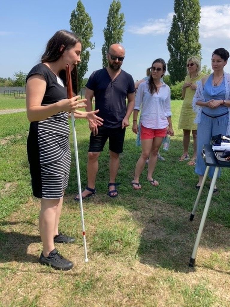 Kollégáink ezért rendeszeresen részt vesznek érzékenyítő és szemléletformáló programokon, legutóbb július 28-án a Magyar Vakok és Gyengénlátók Országos Szövetsége csepeli vakvezető-kutyakiképző (VKK) iskolájában jártunk.