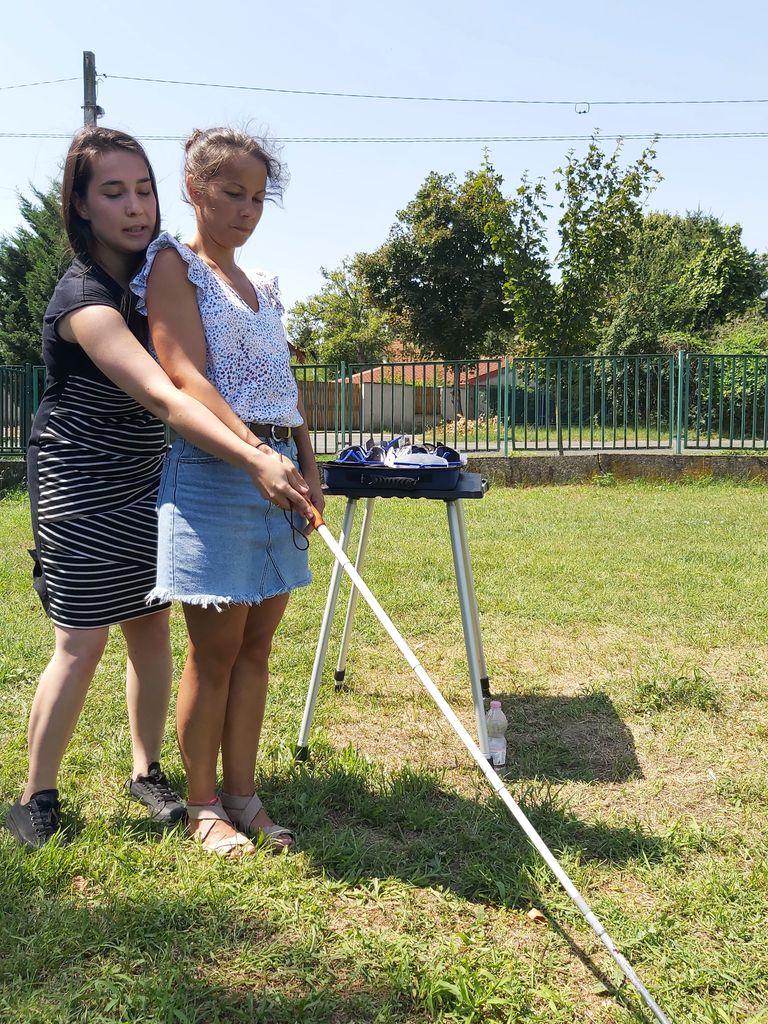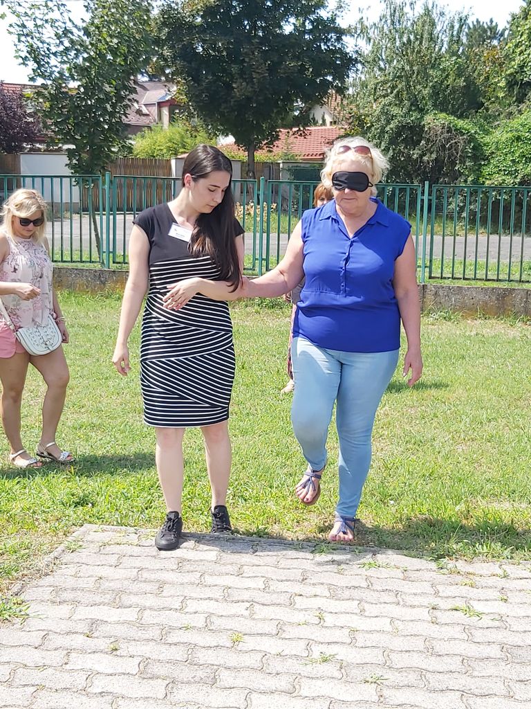 A szemléletformáló eseményen Moni Imola gyógypedagógus segítségével olyan speciális szimulációs szemüvegeket is kipróbálhattunk, amelyek a különböző szembetegségekből adódó látássérüléseket érzékeltetik az ép látású látogatókkal. Alkalmunk adódott megtapasztalni, milyen magunkat egy látó vezetőre bízva közlekedni ismeretlen terepen.