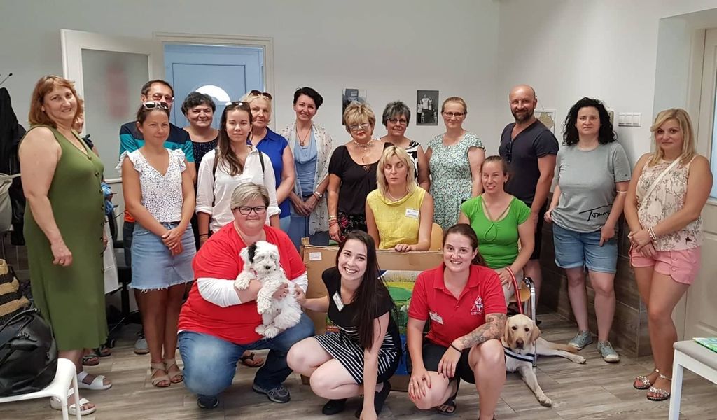 Kollégáink ezért rendeszeresen részt vesznek érzékenyítő és szemléletformáló programokon, legutóbb július 28-án a Magyar Vakok és Gyengénlátók Országos Szövetsége csepeli vakvezető-kutyakiképző (VKK) iskolájában jártunk.