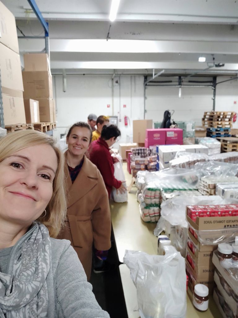 A hideg ellenére nagyon jó hangulatban telt az idei önkéntes szolgálatunk: két alkalommal, két turnusban mentek el a kollégáink dobozokat összeállítani a Máltai Szeretetszolgálat Logisztikai központjába, több száz menekült családnak sikerült így élelmiszercsomagot pakolnunk.